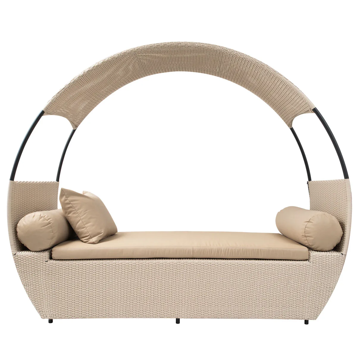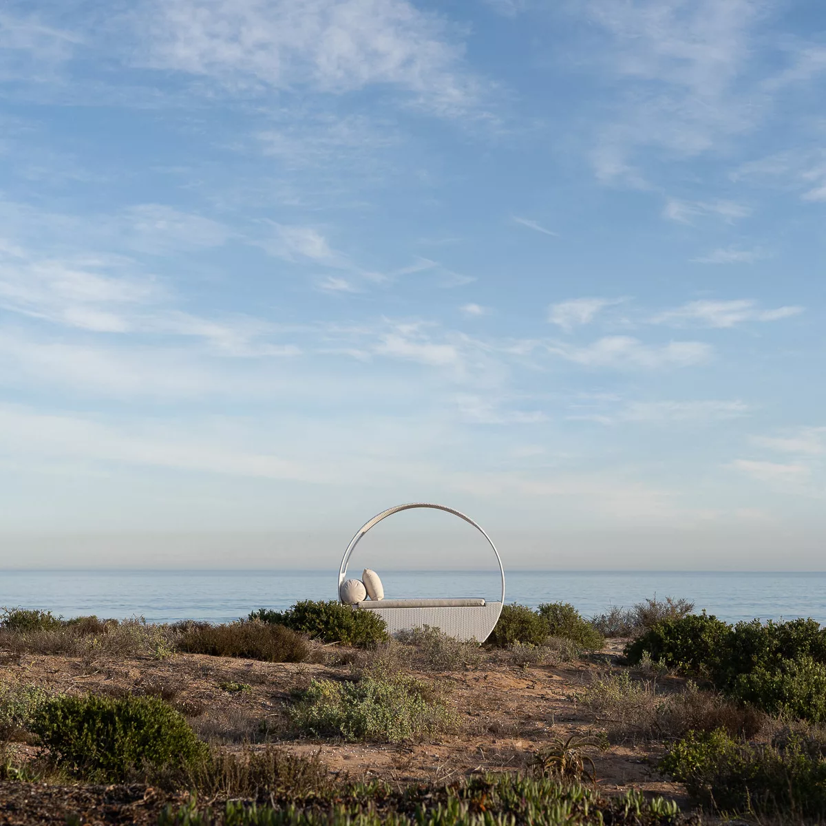 Step into a realm of unparalleled elegance and relaxation with the Avani daybed – a masterpiece that seamlessly merges art and function. From the side, the Avani boasts a perfect circular form, creating a captivating and distinctive silhouette that transforms your outdoor space into a sanctuary of style.