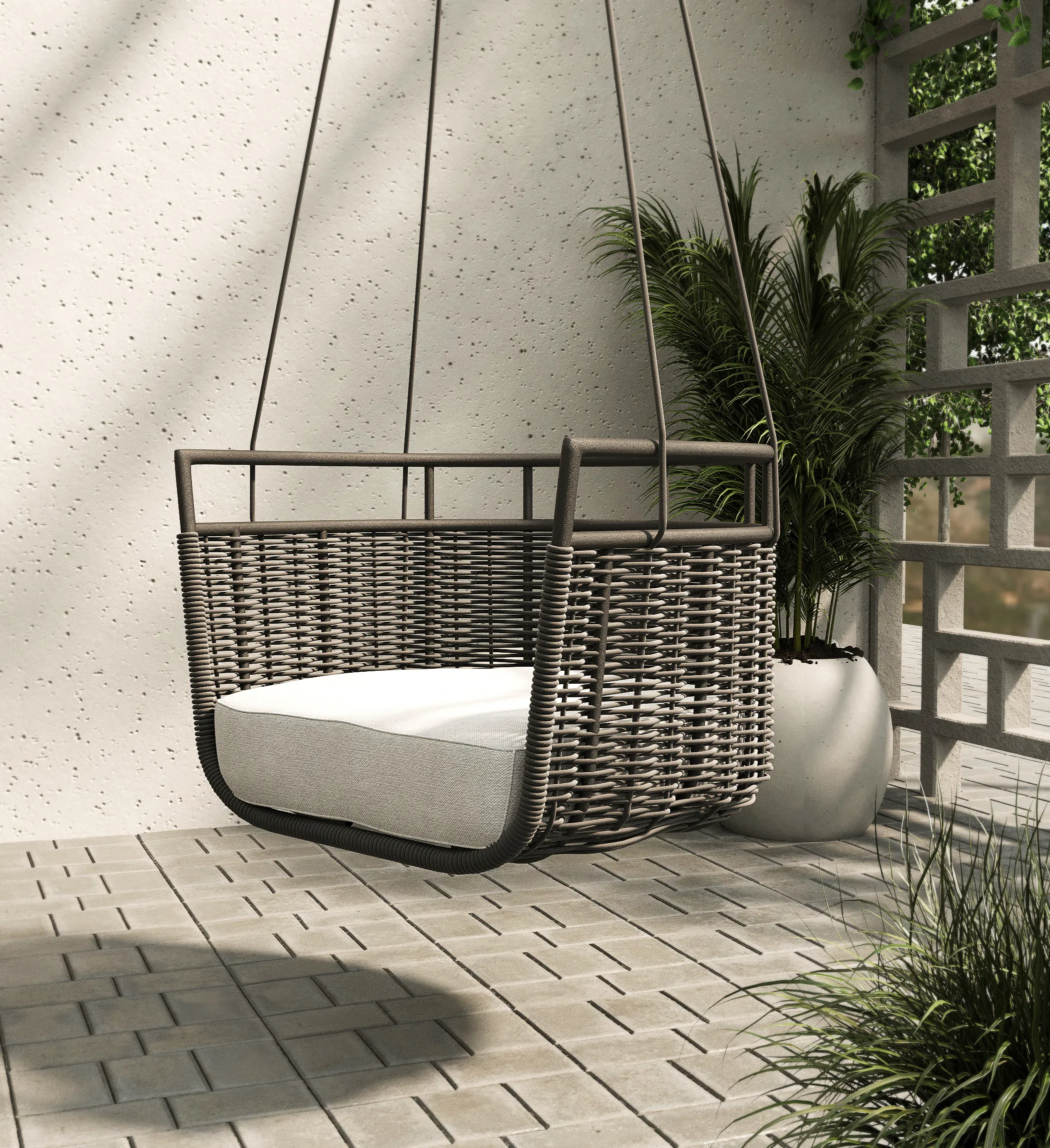 Lira is a celebration of timeless tradition and contemporary design. Crafted from high-grade aluminium, Lira offers lasting durability while gently swaying you into a state of weightless calm. Sink into the plush, upholstered cushion and experience comfort that feels both luxurious and effortless.