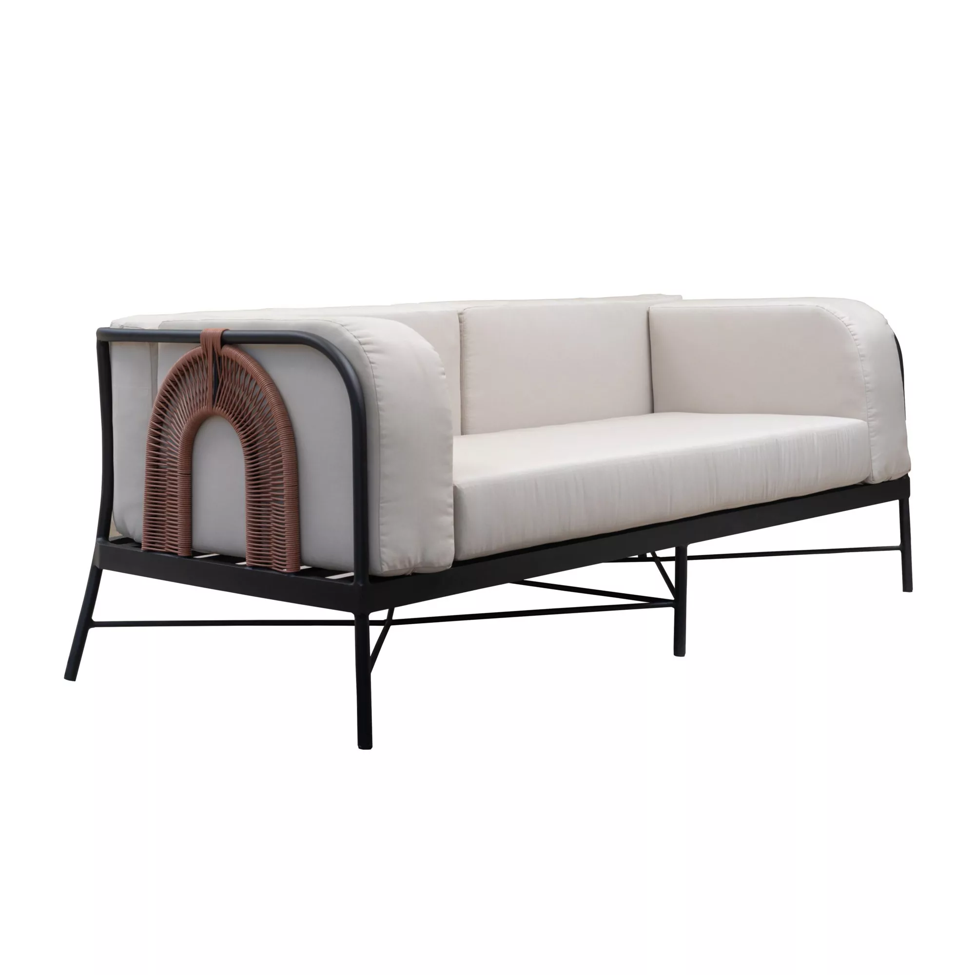 Introducing Lira, where timeless tradition meets modern allure. With its graceful, traditional lines enhanced by an aluminium frame, this sofa exudes sophistication in every detail. The intricate arched weave on the sides and back adds a nostalgic touch, transporting you to an era of refined beauty.