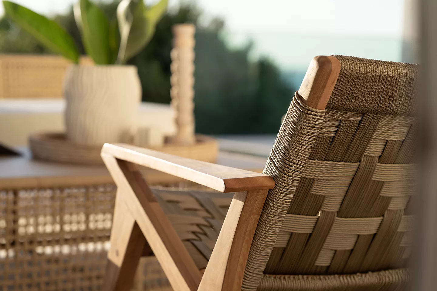 The handwoven cross-detailing adds texture and interest while the low profile and solid frame is perfect for an undercover patio.