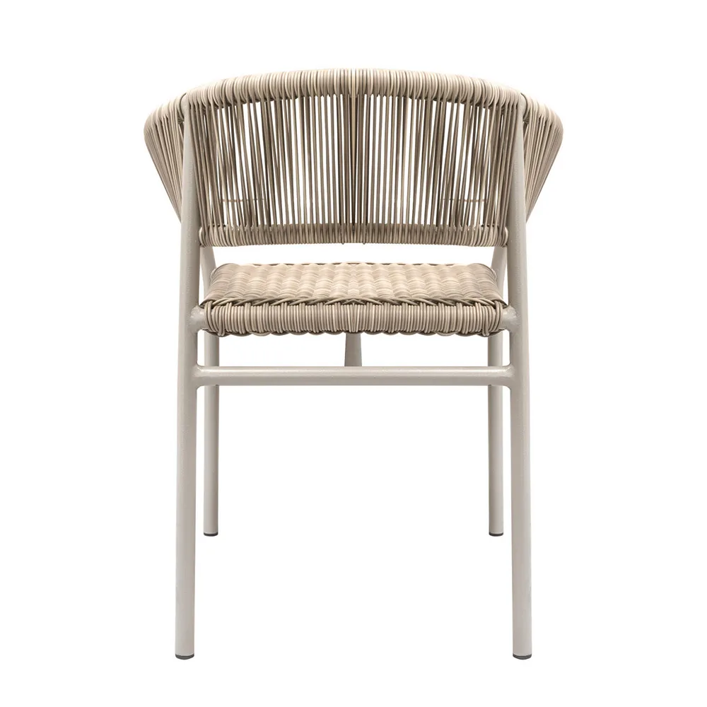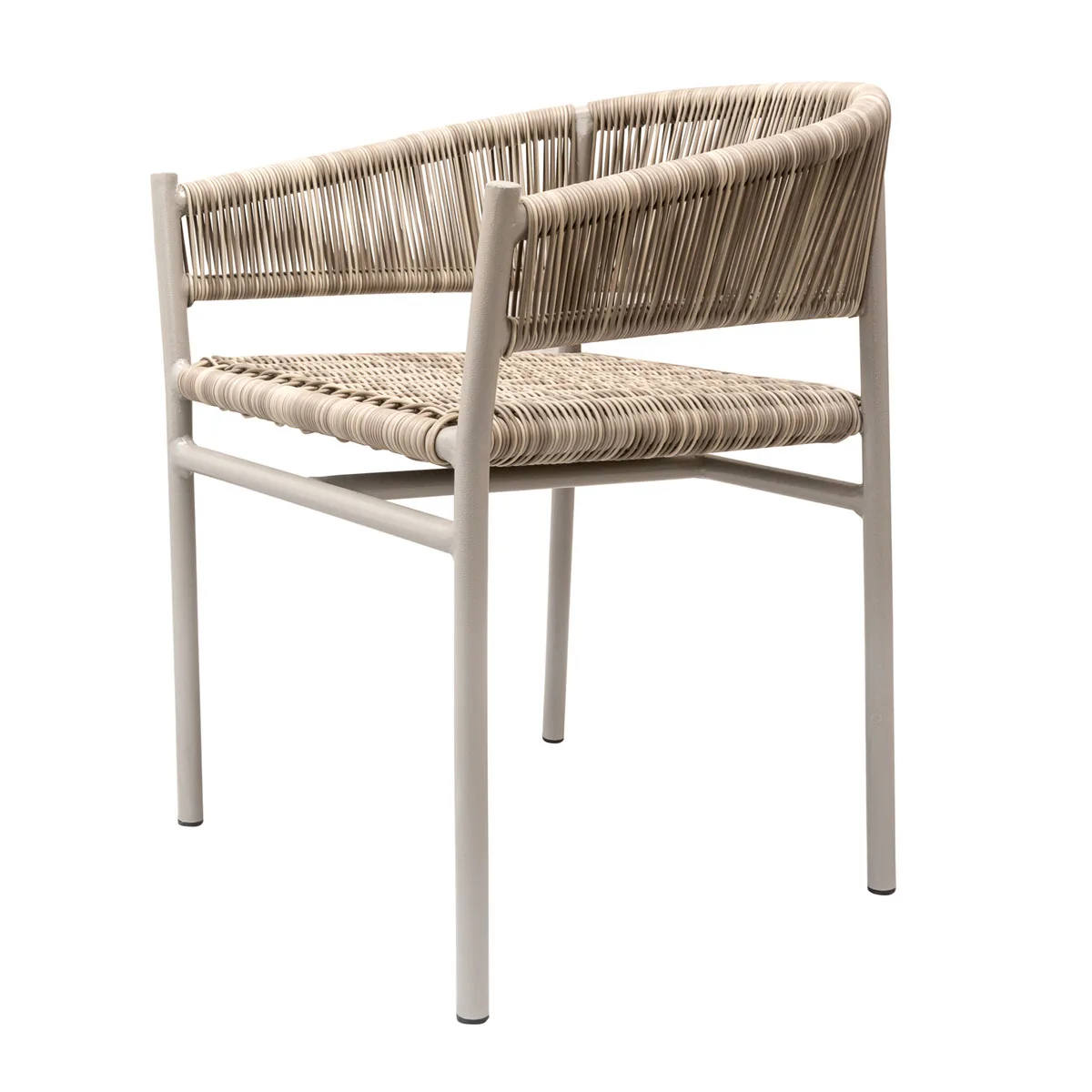 Add comfort and character to your outdoor dining area with our latest chairs, crafted with a woven backrest and gently curved armrests for easy support and relaxed style. The vertical weave brings a sense of lightness, letting sunlight filter through and highlight the handcrafted detail.