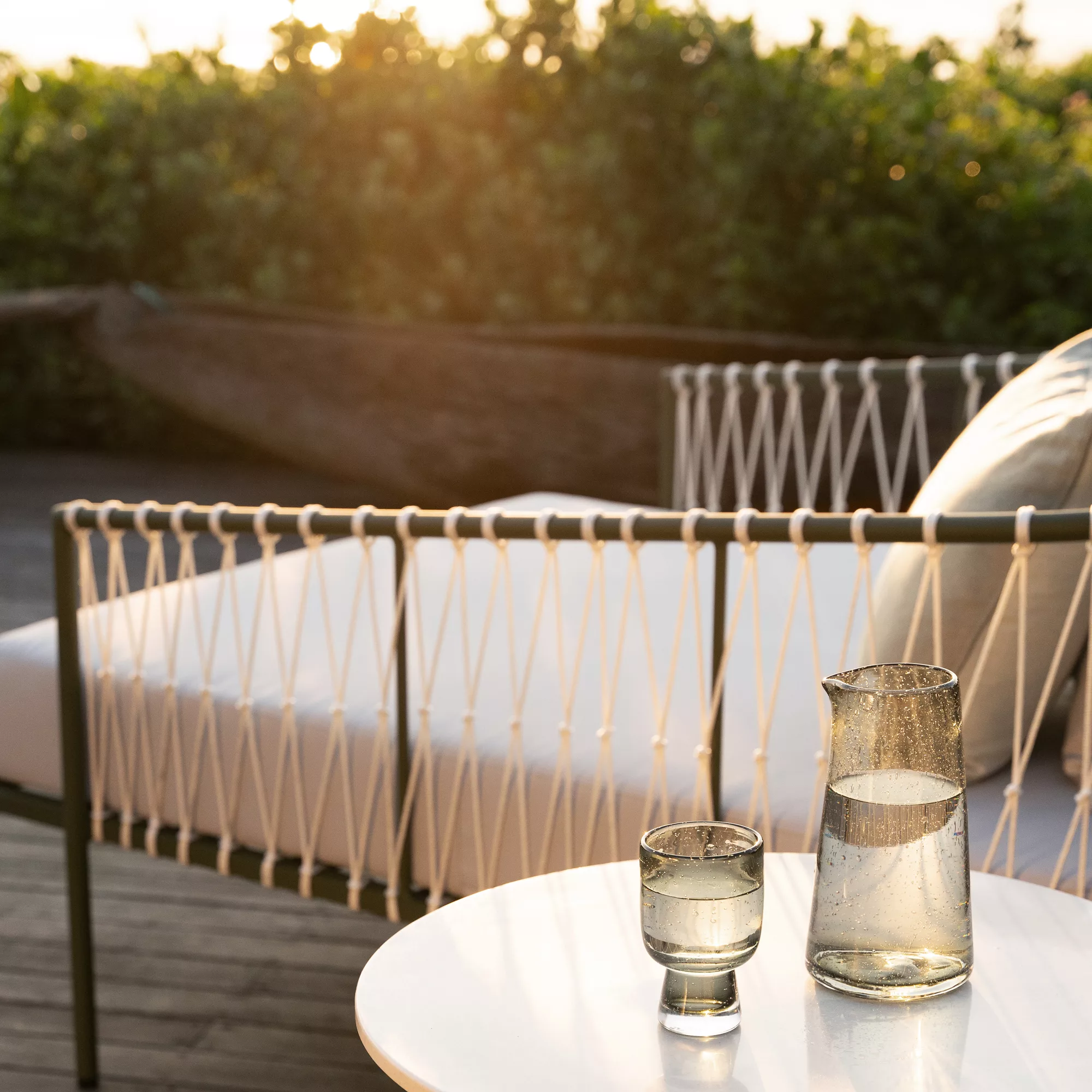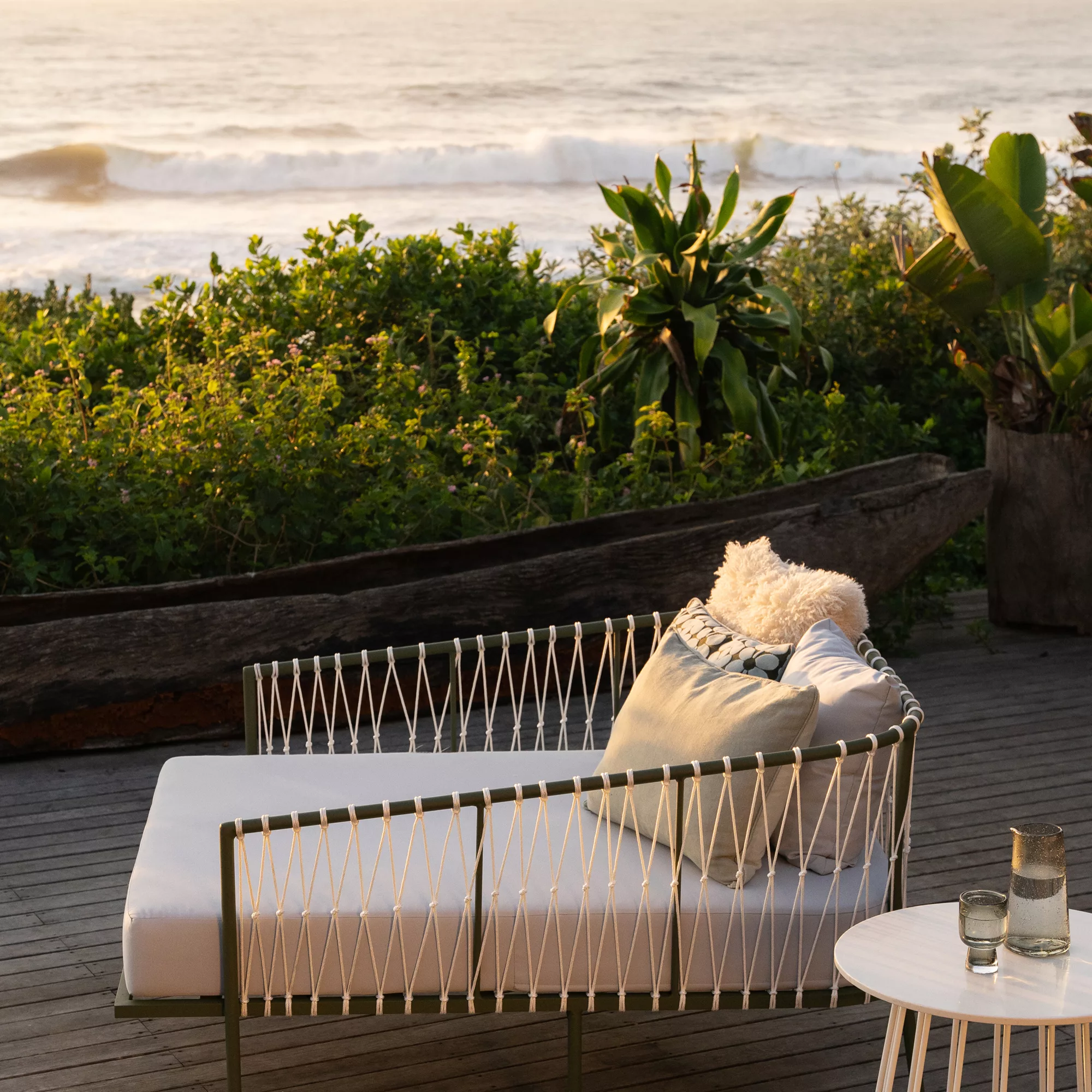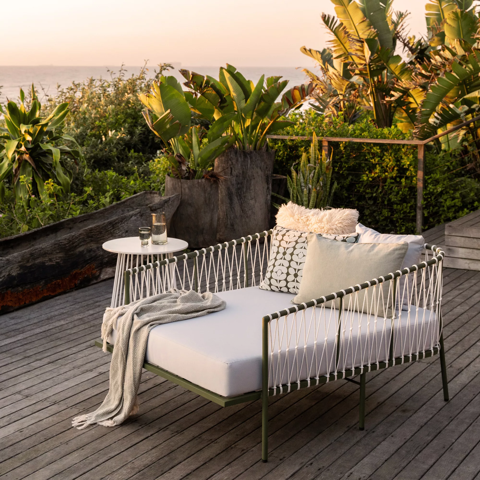 The Zina Daybed features a striking geometric weave using technical rope, adding an eye-catching element to its contemporary silhouette. With each precise angle and meticulous pattern, this daybed is a mesmerising work of art that enhances any indoor or outdoor space.
