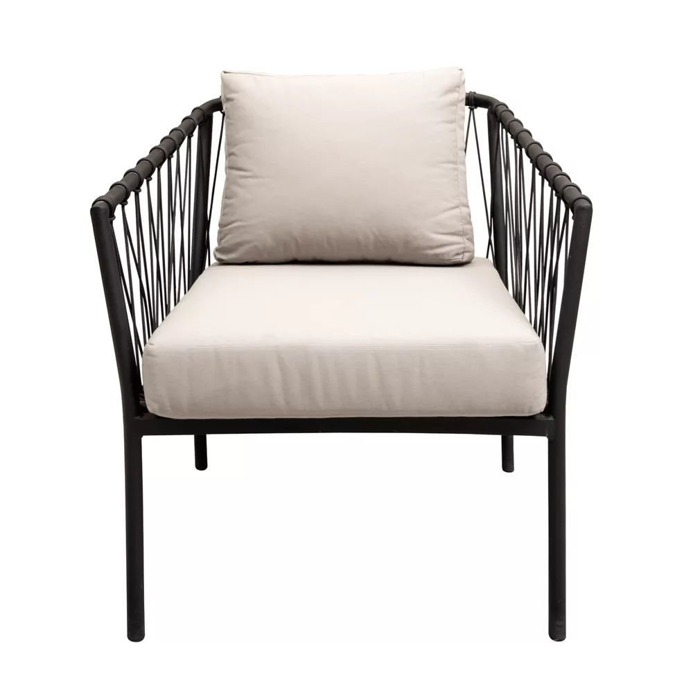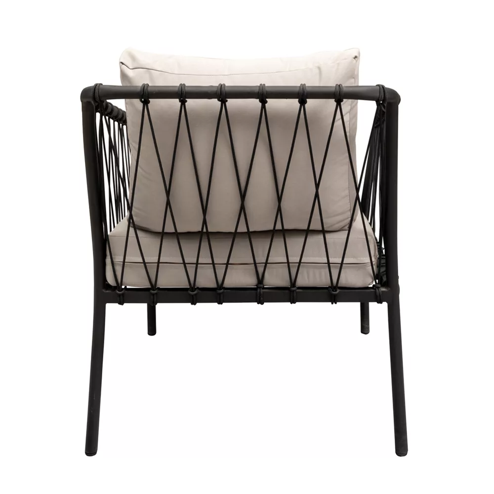 The Zina Occasional Chair showcases a remarkable geometric weave using technical rope, adding an eye-catching element to its contemporary silhouette. With each precise angle and meticulous pattern, this chair is a mesmerising work of art that elevates your living space.